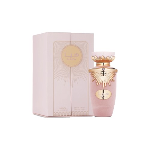 Haya de Lattafa Perfumes es una fragancia de la familia olfativa para Mujeres. Esta fragrancia es nueva. Haya se lanzó en 2022. Las Notas de Salida son champaña, fresa, naranja tangerina, naranja sanguina y rosa; las Notas de Corazón son gardenia, jazmín y orquídea de vainilla; las Notas de Fondo son ámbar, sándalo y castaña.
